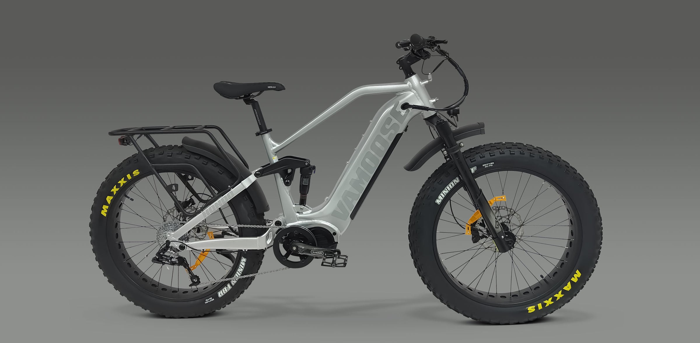 The Vamoose HONDO is a cut above the rest. With top-tier components including Tektro Dorado quad piston brakes, SRAM X5 9-speed derailleur, Rockshox rear suspension, and air front suspension, as well as distance leading 52V 20Ah battery with the dual-battery option, this cycle is a high-performing beast.