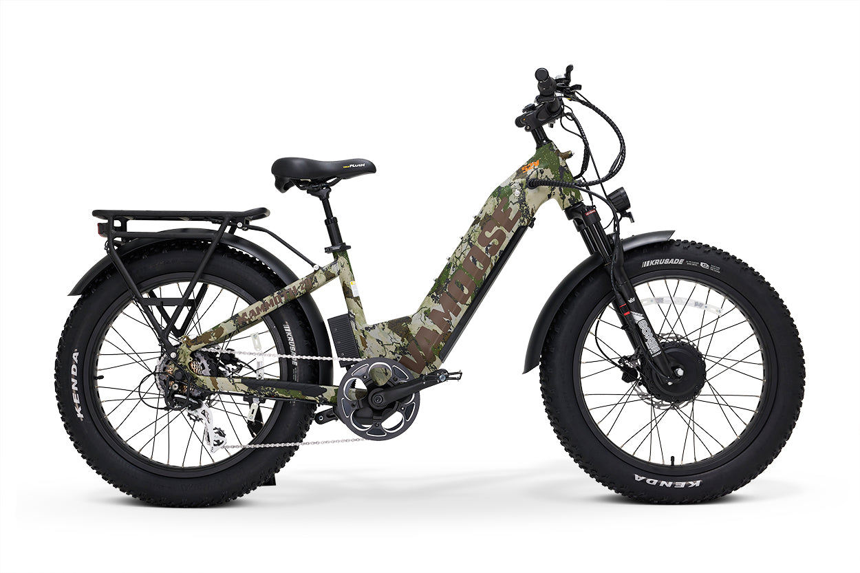 This Vamoose Mammoth 24 ST AWD electric bicycle has become famous due to its smaller (16.5") frame and 24" tires but still comes standard with the powerful dual 52V 500W motors, torque sensor, and optional dual battery capability.