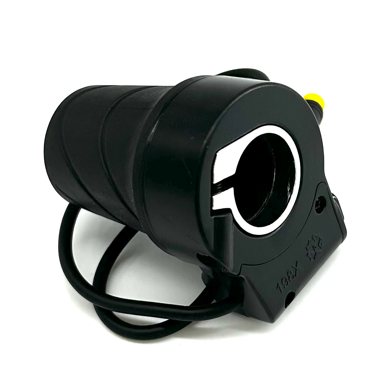 The Throttle with Cut-Off 2024 delivers responsive power management for your electric cycle. Its intuitive design enables smooth, variable speed control while the integrated shut-off button provides immediate power interruption for enhanced safety. Compatible with HIGO male 3-pin connectors, this throttle integrates seamlessly into modern e-bike systems. Engineered for precision and reliability, it's the ideal upgrade for riders seeking refined command over their bike's performance.
