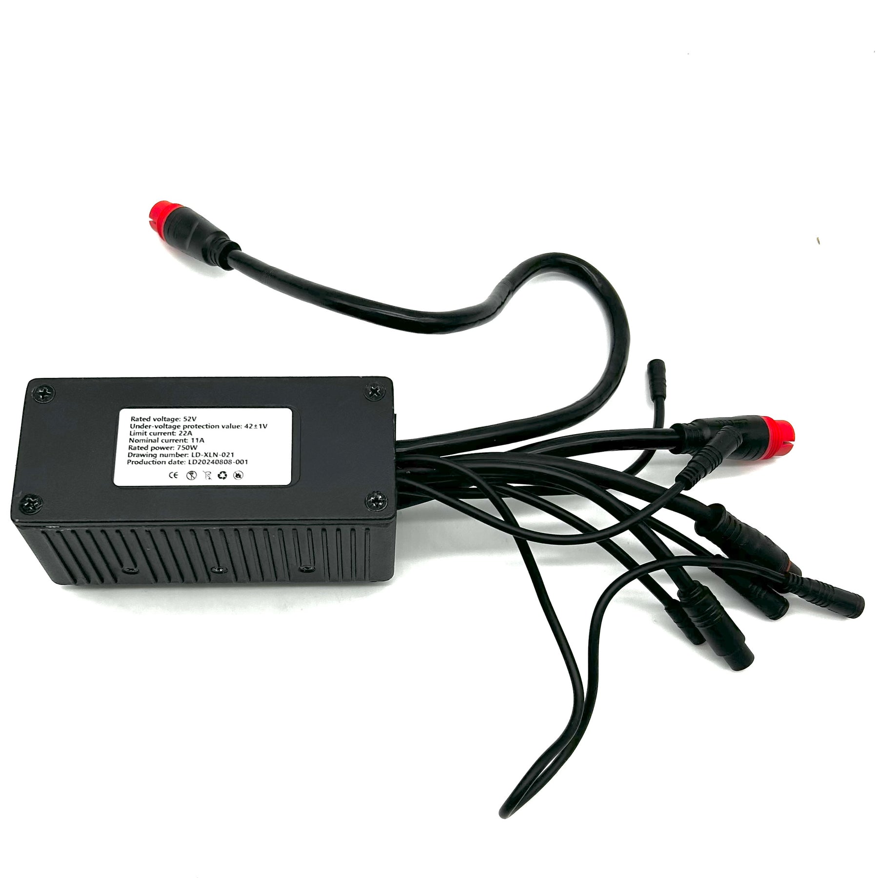 Ce contrôleur de vélo électrique fait office de cerveau de votre vélo électrique ; il reçoit vos commandes et les transmet aux autres modules. Il utilise deux connecteurs Julet L1121 femelles, un connecteur YLS femelle à 2 broches, un connecteur HIGO femelle à 3 broches, un connecteur HIGO mâle à 2 broches, deux mini-connecteurs Julet à 2 broches, un connecteur Julet à 6 broches et un connecteur Julet à 8 broches.