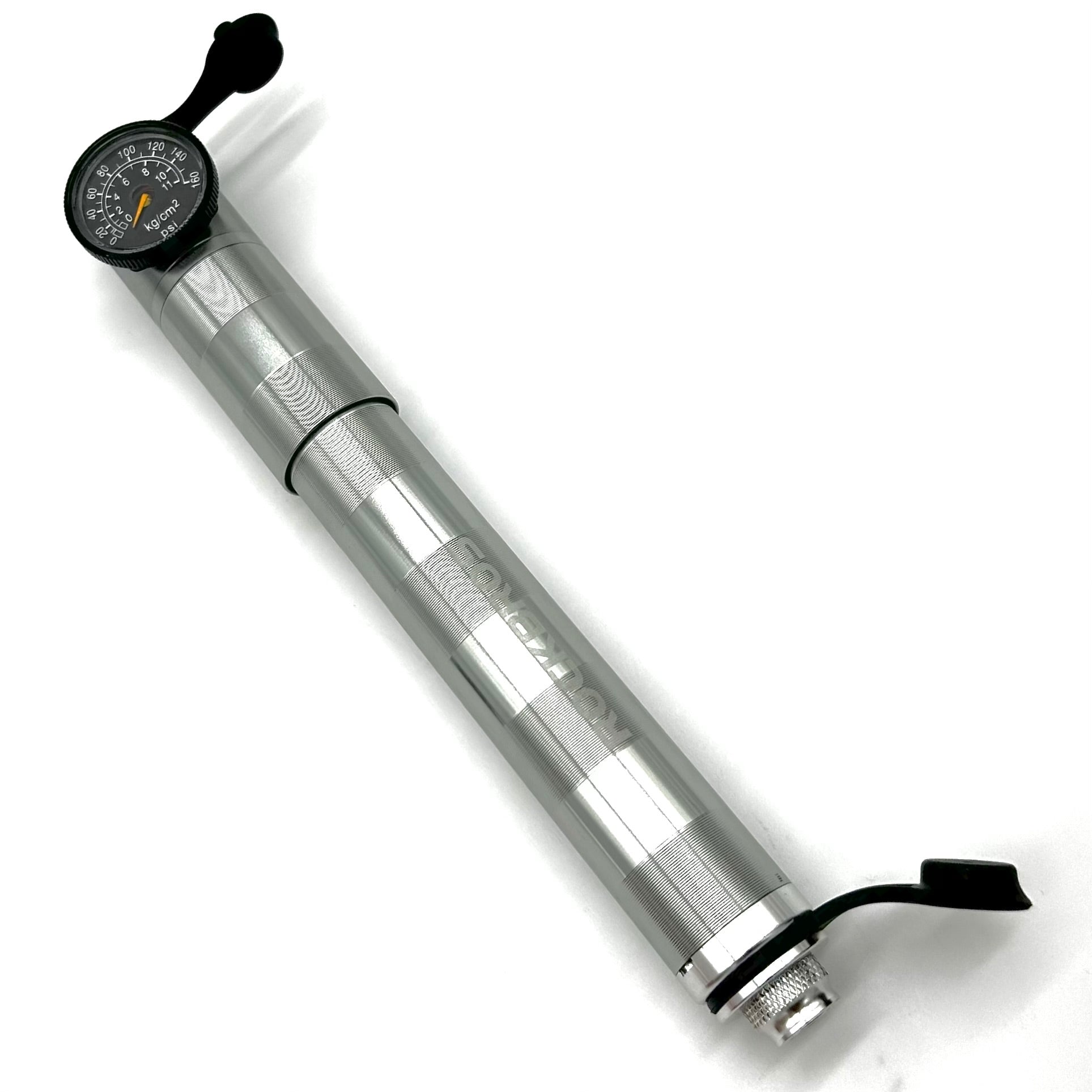 The Rock Bros Mini bike pump combines portability with powerful performance, delivering up to 160 PSI through its durable aluminum construction. It is compatible with both Schrader and Presta valves and is sold with its mount.