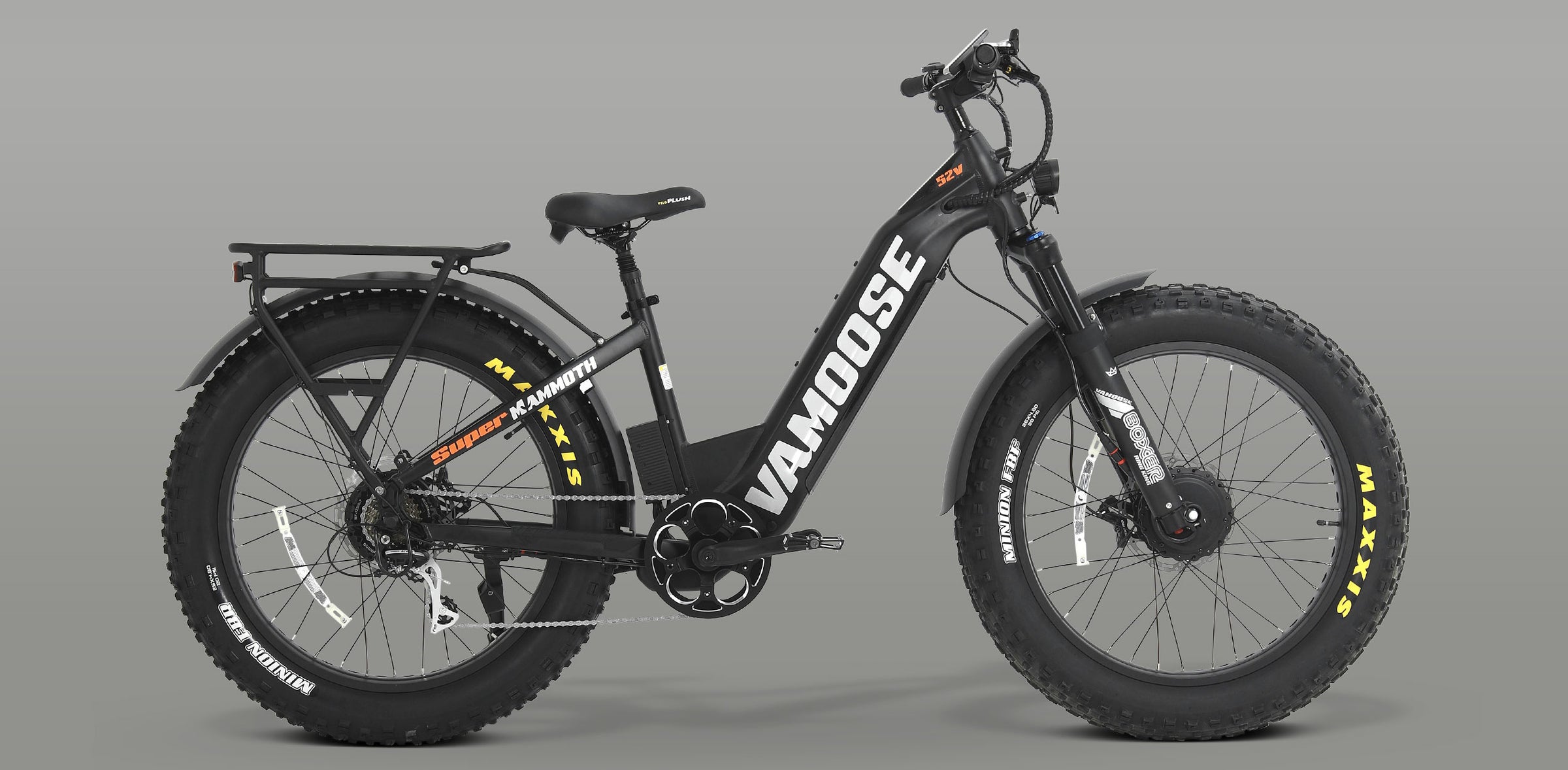 Ce vélo électrique Vamoose Super Mammoth AWD est équipé de deux moteurs 52V 750W (avant et arrière) offrant une puissance et un couple exceptionnels pour gravir des collines ou écraser de la poudreuse fraîche ! Une machine impressionnante, le Super Mammoth est livré en standard avec une batterie 52V 20Ah vraiment gigantesque produisant une incroyable performance de 1040 Watt-heures - une autonomie de +84 km ! Encore mieux, vous pouvez ajouter une batterie supplémentaire 52V 15Ah pour vous emmener encore plus loin (1850 Watt-heures et 150 km) !