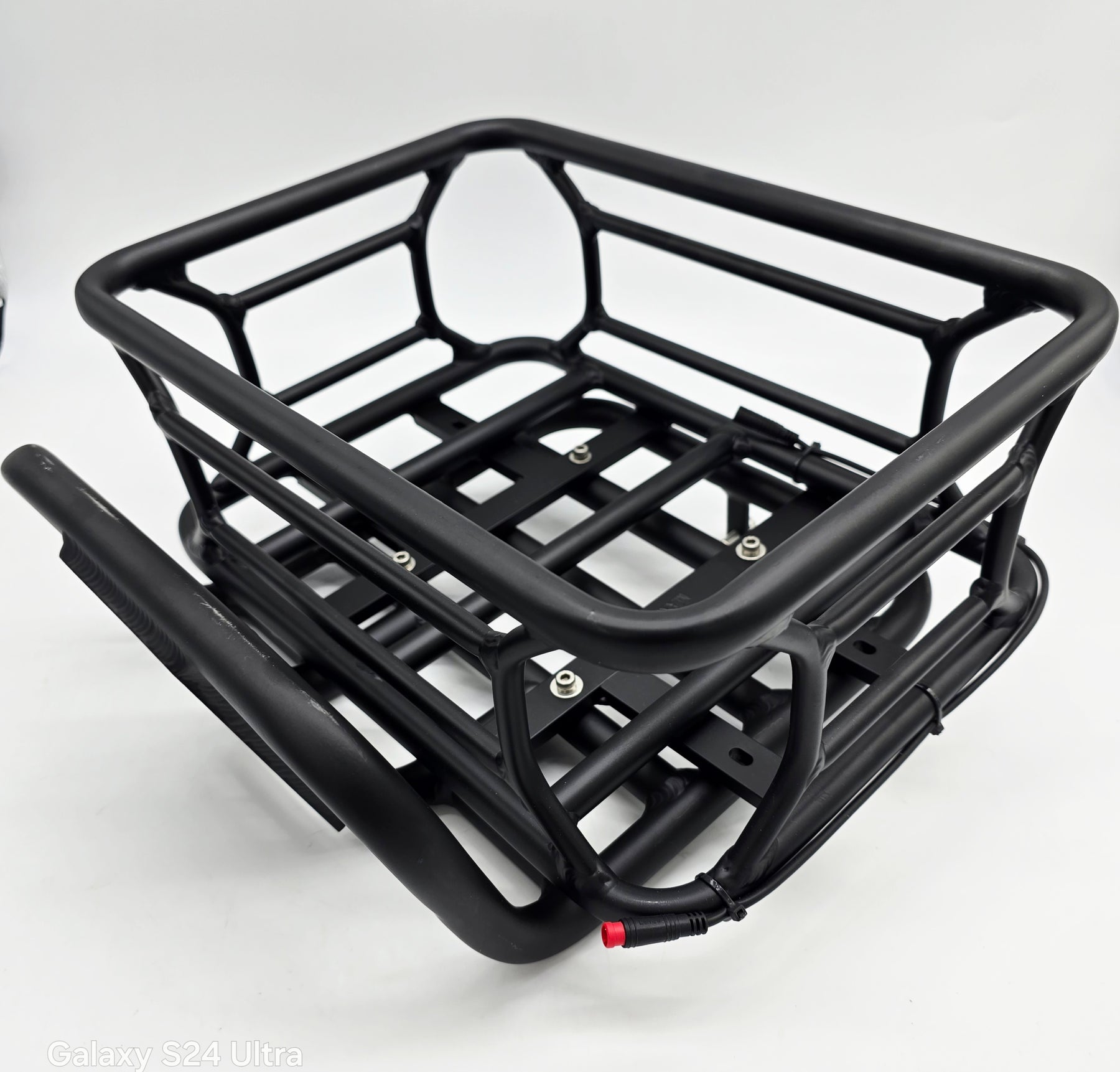 Transportez vos affaires sans effort grâce au panier deux pièces avec porte-bagages avant. Sa conception en deux parties offre un rangement pratique, tandis que son positionnement à l'avant permet un accès facile en roulant. Idéal pour les trajets quotidiens et les balades à vélo.